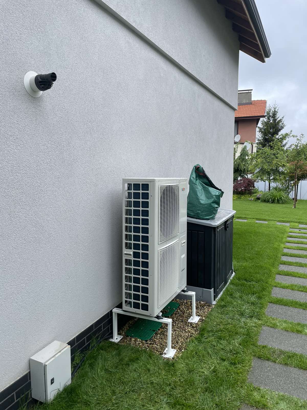 Термопомпа - КъщаВ тази къща е изградена съвременна система за климатичен комфорт, съчетаваща термопомпа и конвектори. Термопомпата използва иновативни технологии, за да осигури ефективно отопление и охлаждане, като същевременно намалява разходите за енергия. Конвекторите, разположени в различните помещения на къщата, осигуряват бързо и равномерно разпределение на климата, гарантирайки уют и комфорт за живущите в нея.
