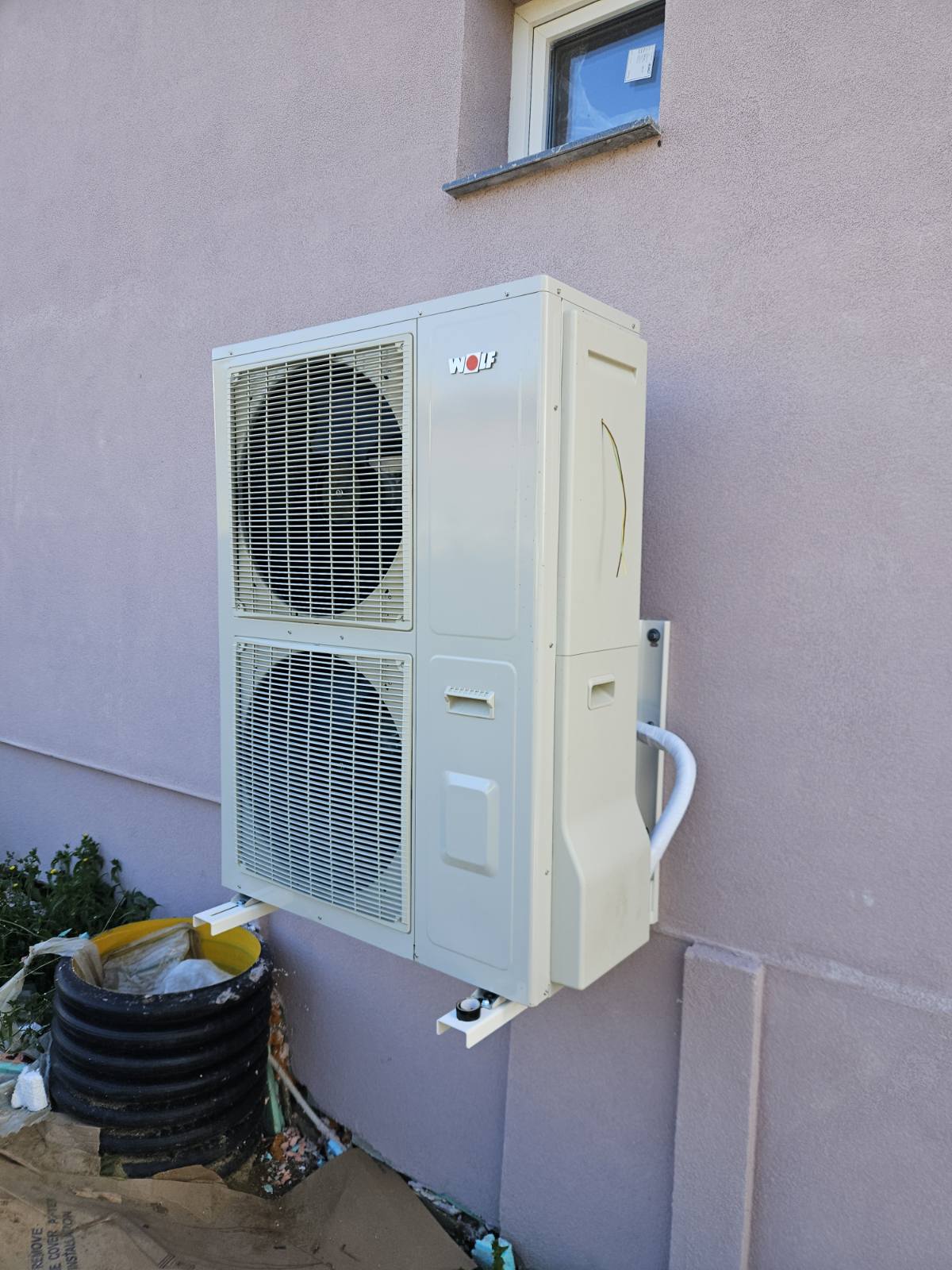 Термопомпа - Къща ДраговищицаОтоплителна инсталация с подово отопление и термопомпа тип сплит - въздух-вода